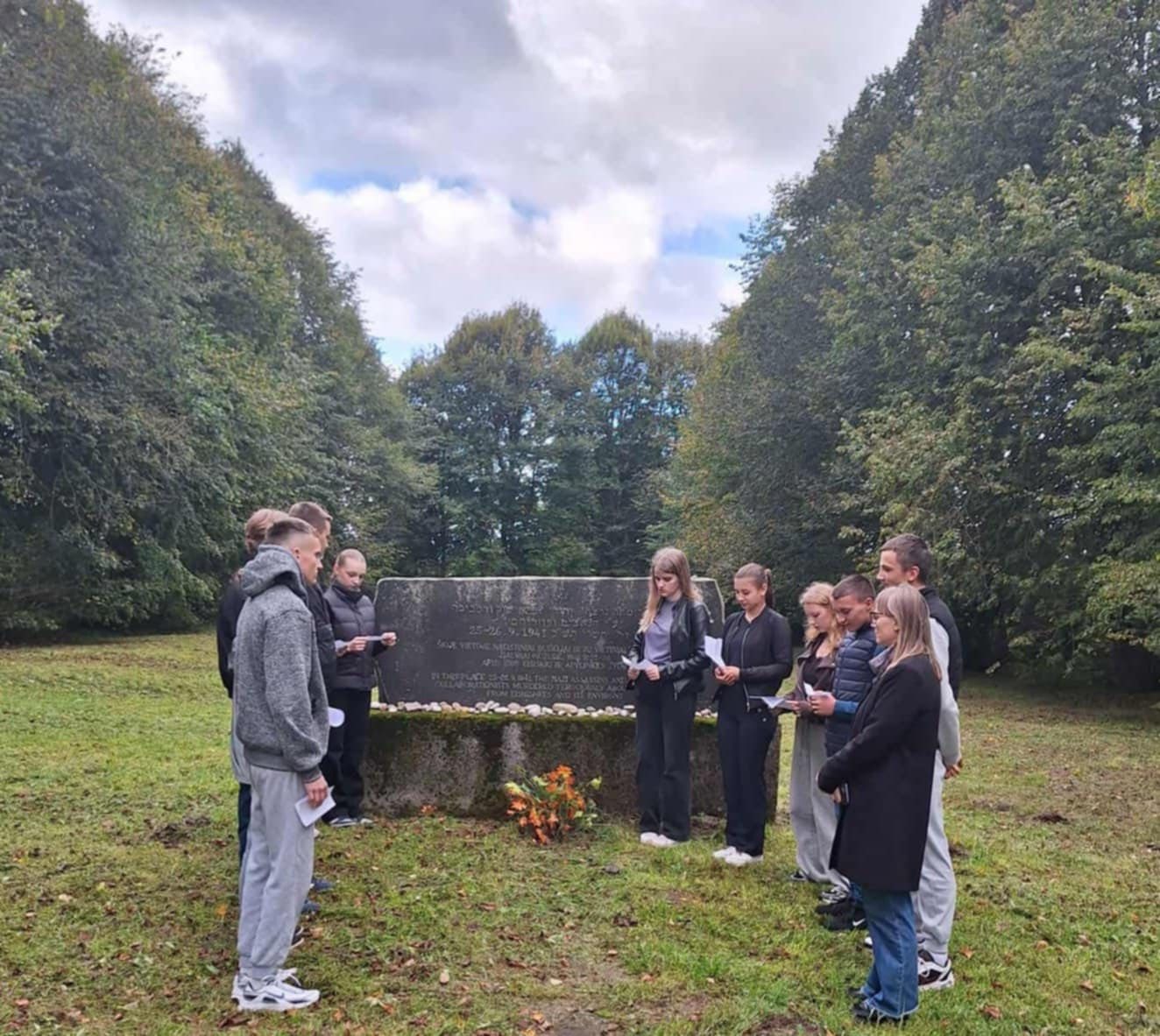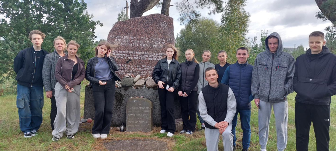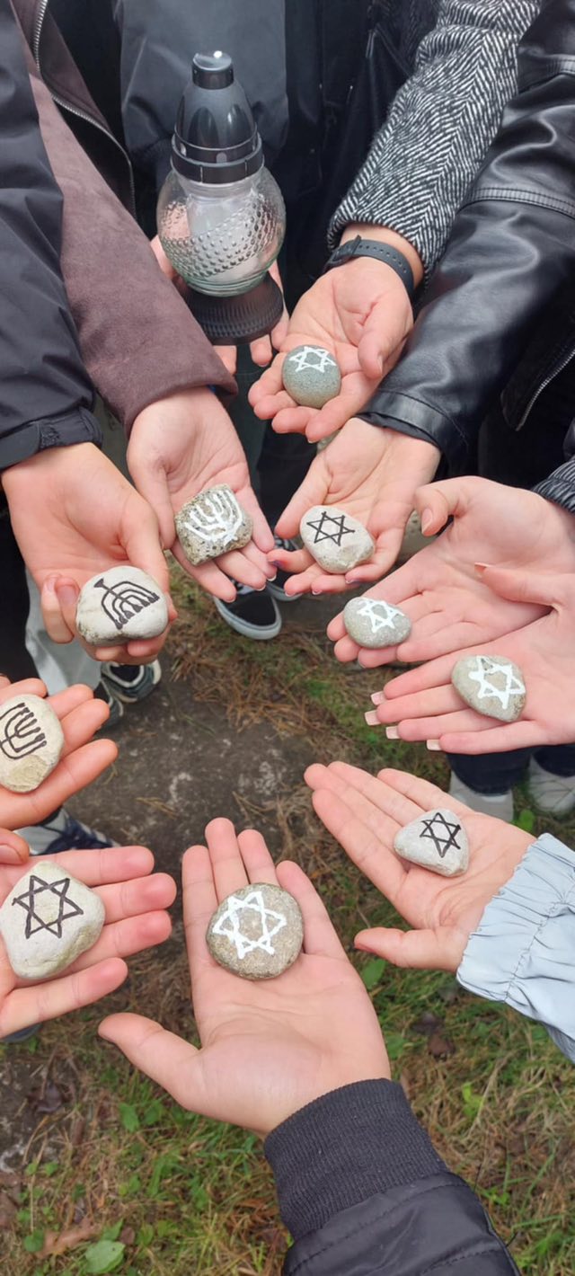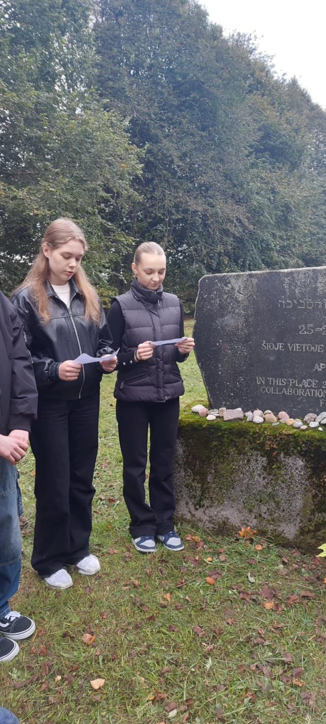 Rugsėjo 23-ioji – Lietuvos žydų genocido aukų atminimo diena. Minėdami šią skaudžią mūsų istorijos datą,2025 m. rugsėjo 19 d. IIG – IIIG klasių mokiniai kartu su lietuvių kalbos ir istorijos mokytojomis dalyvavo integruotoje pamokoje Eišiškėse. Pamokos metu buvo skaitomos Anos Frank dienoraščio ištraukos, leidžiančios pajausti jaunos mergaitės išgyvenimus, jos svajones ir baimes. Tai tapo jautria jungtimi tarp pasaulinės tragedijos ir mūsų istorijos. Mokiniai iškilmingoje aplinkoje prie paminklų padėjo akmenis, papuoštus menoros ir Dovydo žvaigždės simboliais, taip pagerbdami aukas. Ši integruota pamoka buvo ne tik gyva istorijos ir literatūros pamoka, bet ir pilietiškumo bei empatijos pamoka. Ji priminė, kad mūsų pareiga – saugoti tiesą, perduoti ją ateities kartoms ir neleisti neapykantai kartotis.