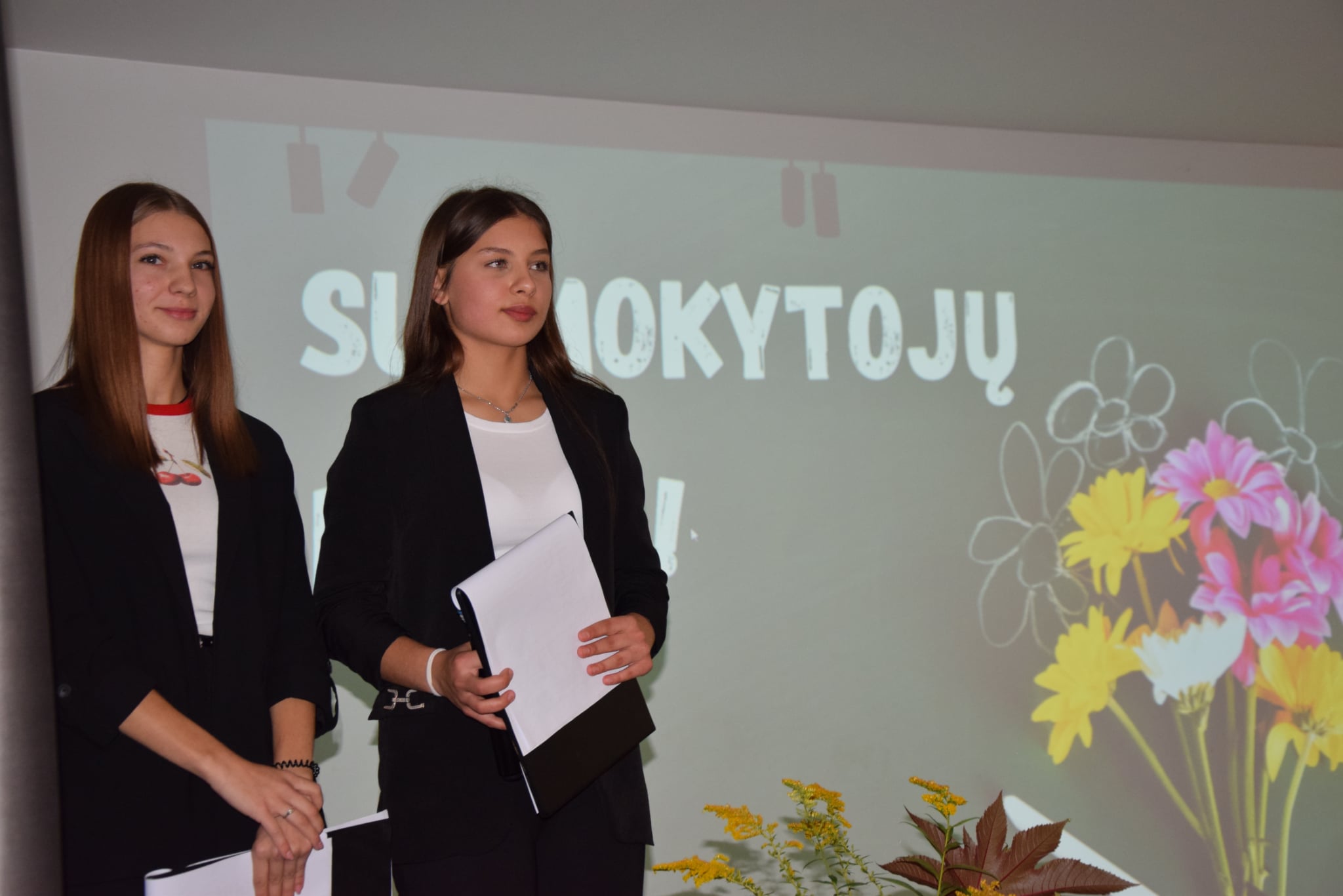 2025 m. spalio 3 dieną mūsų gimnazijoje vyko šventė, skirta Mokytojo dienai paminėti. Šventinį koncertą organizavo Mokinių taryba kartu su socialine pedagoge, o prie renginio paruošimo prisidėjo ir daugybė kitų aktyvių mokinių. Skambėjo nuoširdūs žodžiai, eilės, dainos ir šokiai, o visa tai buvo gražiausias padėkos ženklas mūsų brangiems mokytojams už jų kantrybę, šilumą ir atsidavimą. Jaunimo grupė kartu su koordinatore paruošė mokytojams rankų darbo dovanėles, simbolizuojančias dėkingumą ir pagarbą už kasdienį darbą bei rūpestį.