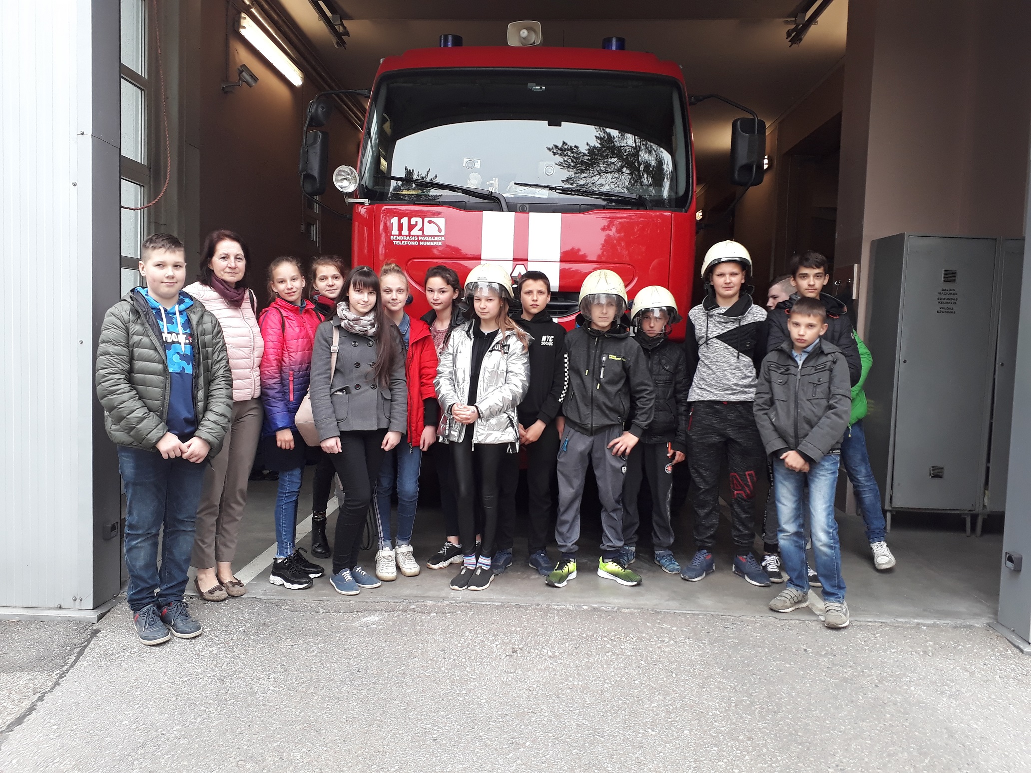 Kalesninkų L. Narbuto gimnazijos 6-8 klasių mokiniai su ,,žmogaus sauga‘‘ mokytoja Vilija Petrauskiene, iš mokyklos klasės persikėlė į gaisrinę. Kad gebėtų atpažinti pavojus ir saugiai elgtis jiems iškilus, š./m. gegužės 14 dieną nuvyko į Varėnos Priešgaisrinę gelbėjimo tarnybą. Edukacinių užsiėmimų metu mokiniai žiūrėjo mokomuosius filmus apie ekstremalias situacijas, susipažino su gaisrininko gelbėtojo profesija, išbandė treniruoklių salės įrangą, iš arti pamatė ir susipažino su gelbėtojų naudojama technika.