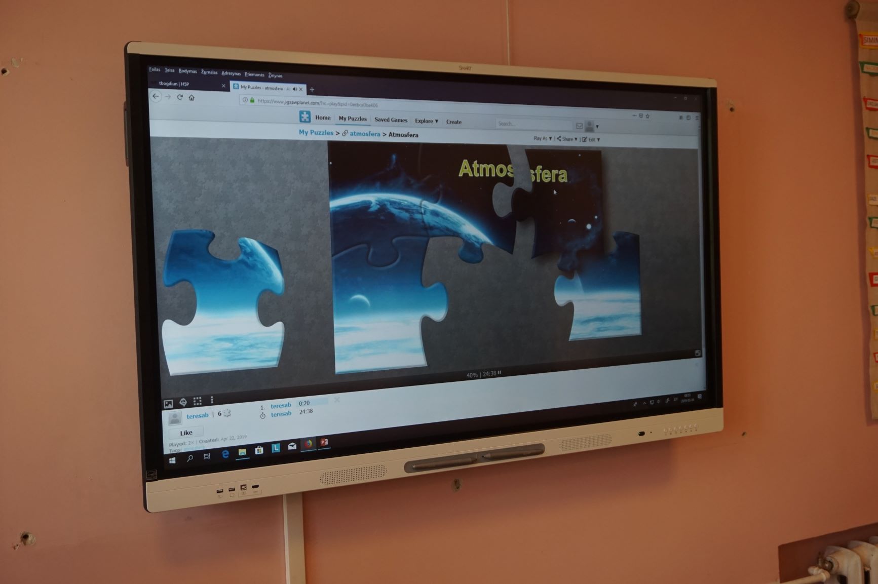 2019 m. gegužės 6 dieną vyko integruota chemijos ir fizikos pamoka 8 klasėje, kurios tema buvo „Atmosfera“. Mokiniai išmoko, kas yra atmosfera, iš kokių sluoksnių ji yra sudaryta, kokia jos reikšmė. Atliko interaktyvias užduotis bei laboratorinius darbus, kurių metu patikrino oro savybes. Padarė koliažą apie oro sudedamąsias dujas, atliko užduotis apie oro taršos priežastis ir pasiūlė, kaip sumažinti užterštumą. Pamokos pabaigoje atliko testą, patikrino bei įvertino savo įgytas žinias.