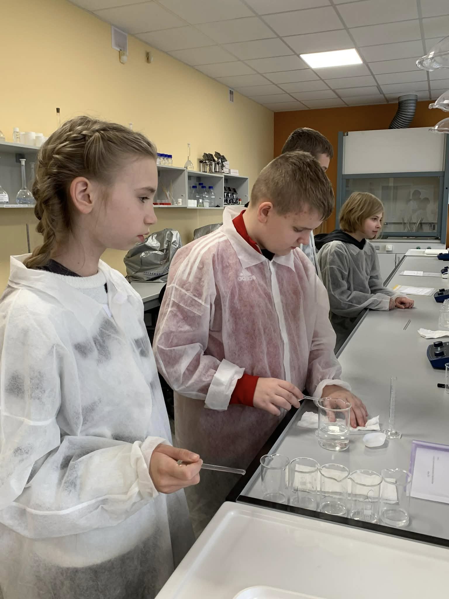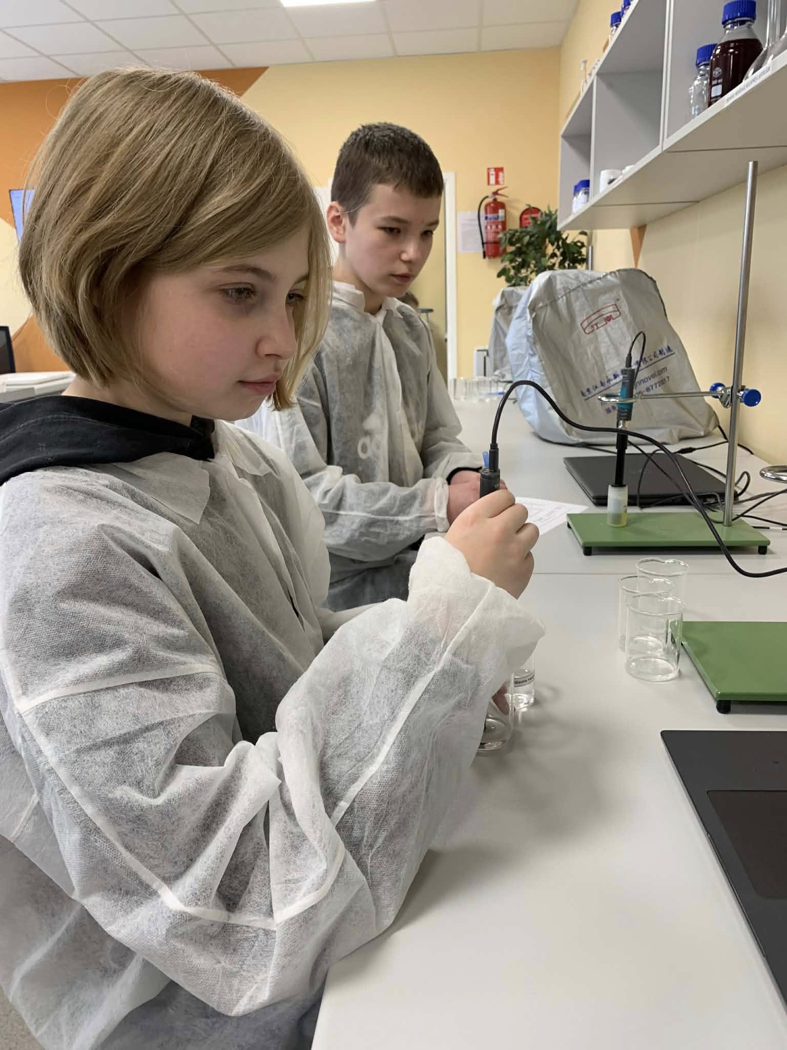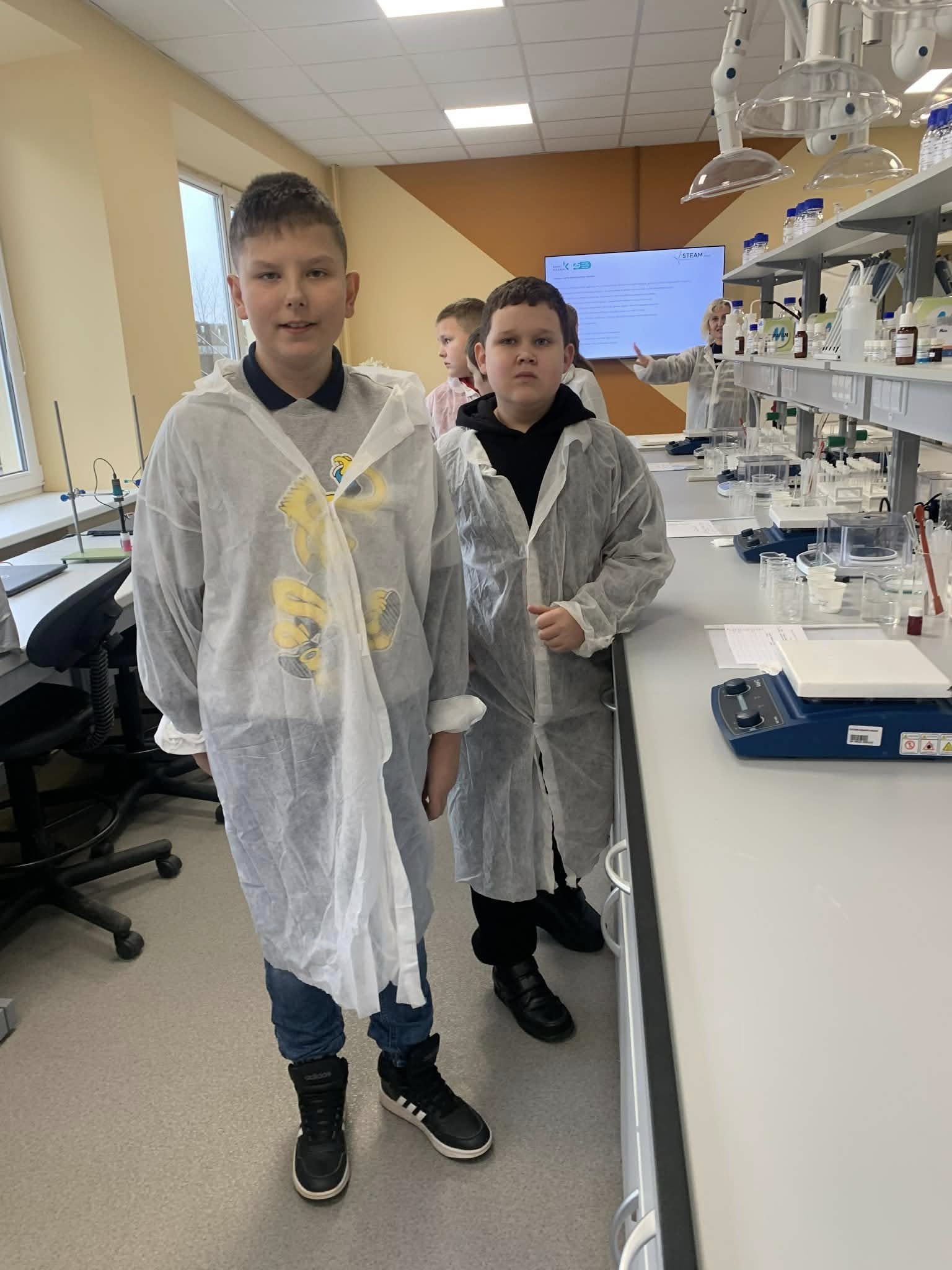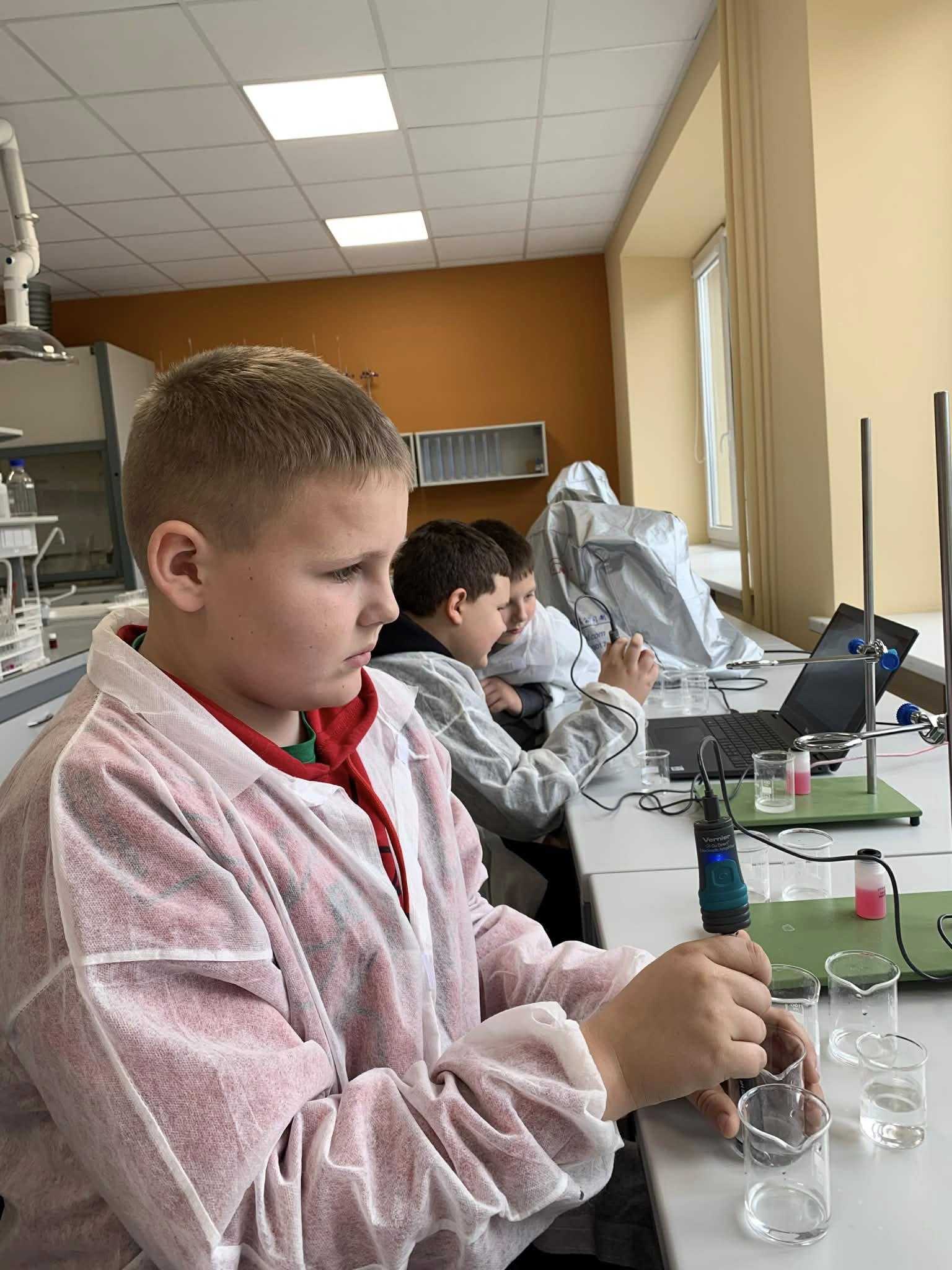 21 listopada uczniowie klas 5–6 wraz z panią od nauk przyrodniczych wzięli udział w ciekawych zajęciach laboratoryjnych. Zajęcia odbyły się w Centrum STEAM w Olicie. Tematem zajęć było “Badanie kwasowości roztworów za pomocą wskaźników i czujników”. W laboratorium uczniowie badali kwasowość i zasadowość różnych roztworów przy użyciu naturalnych wskaźników oraz czujnika pH. Młodzi badacze sprawdzali, czy popularne substancje – takie jak sok z cytryny, sól kuchenna oraz soda – są kwaśne, neutralne czy zasadowe. Porównując wyniki uczyli się formułować wnioski i rozumieć właściwości chemiczne otaczających nas artykułów spożywczych.