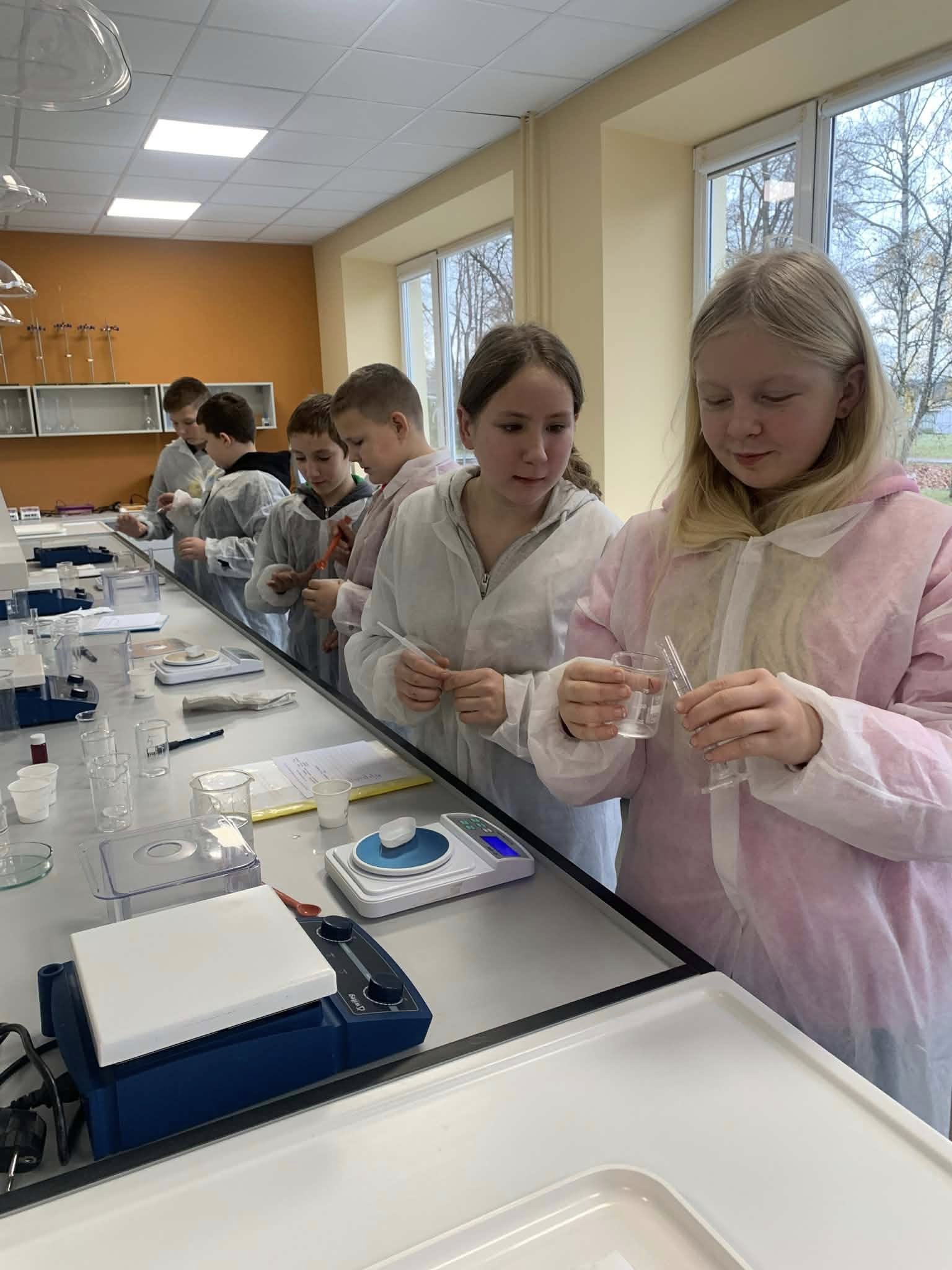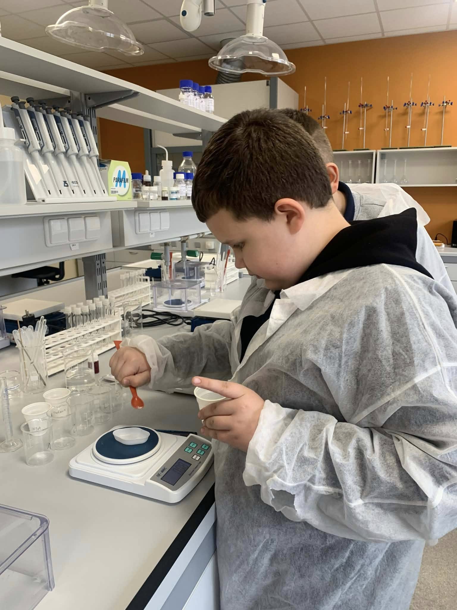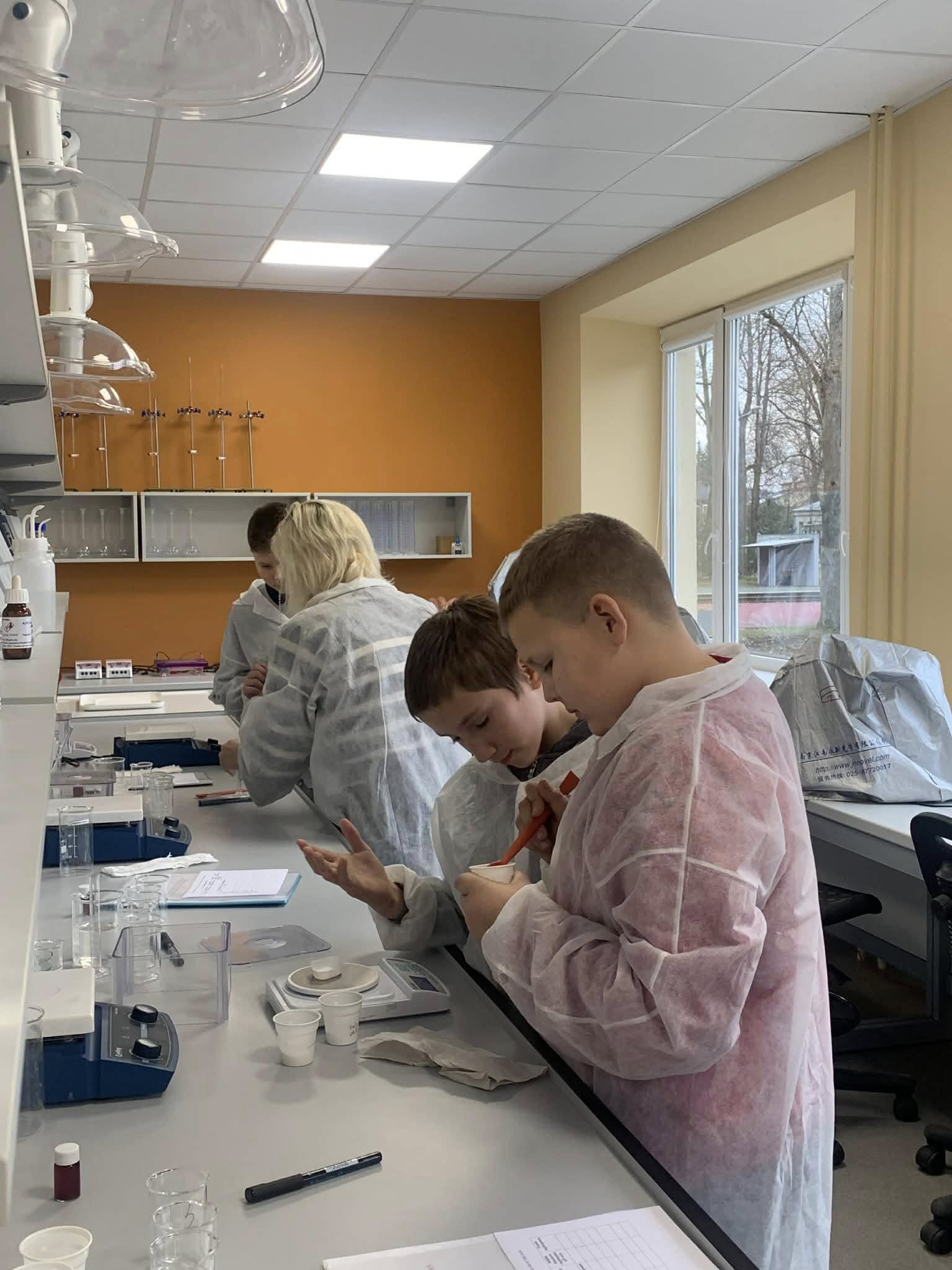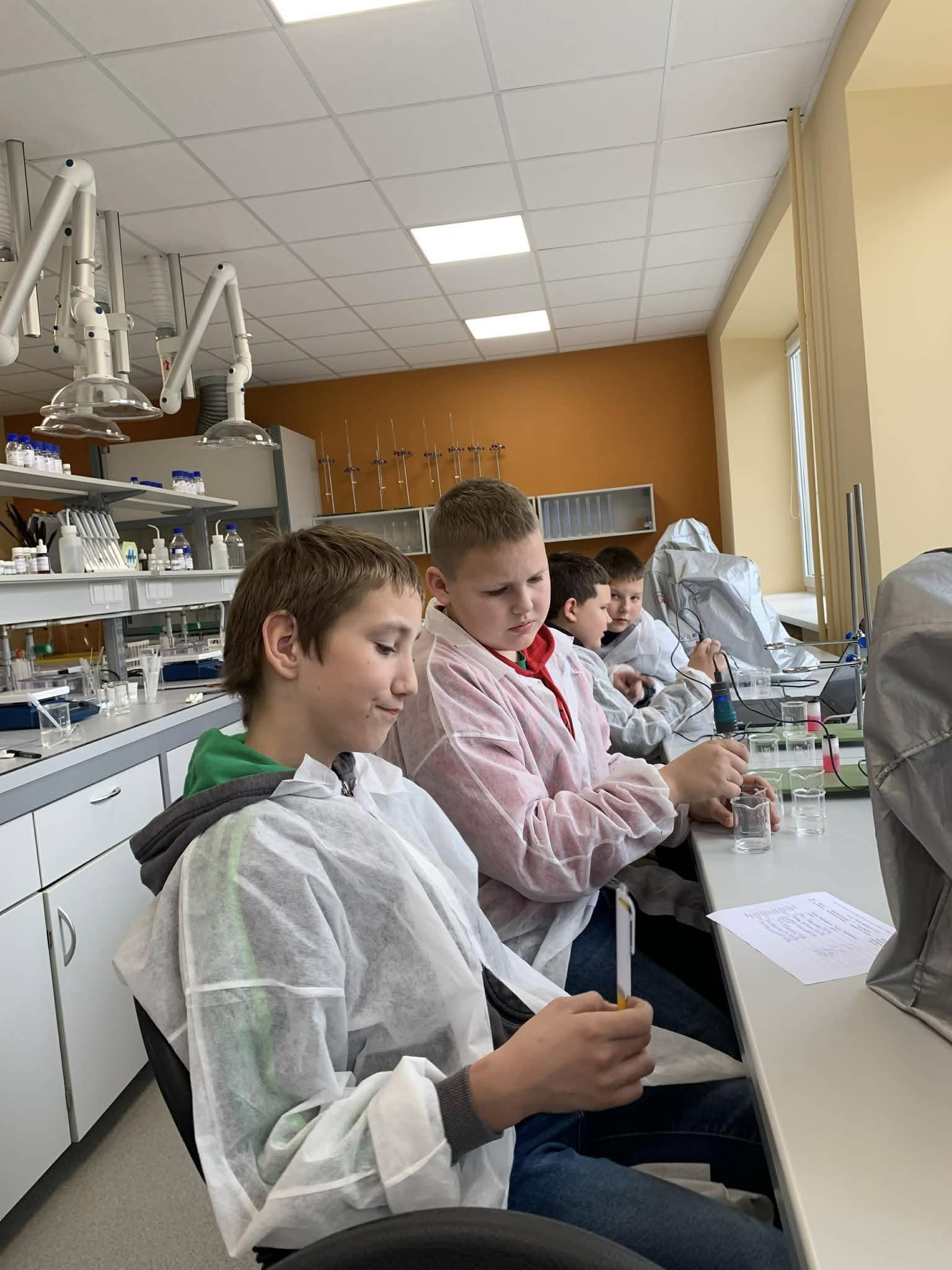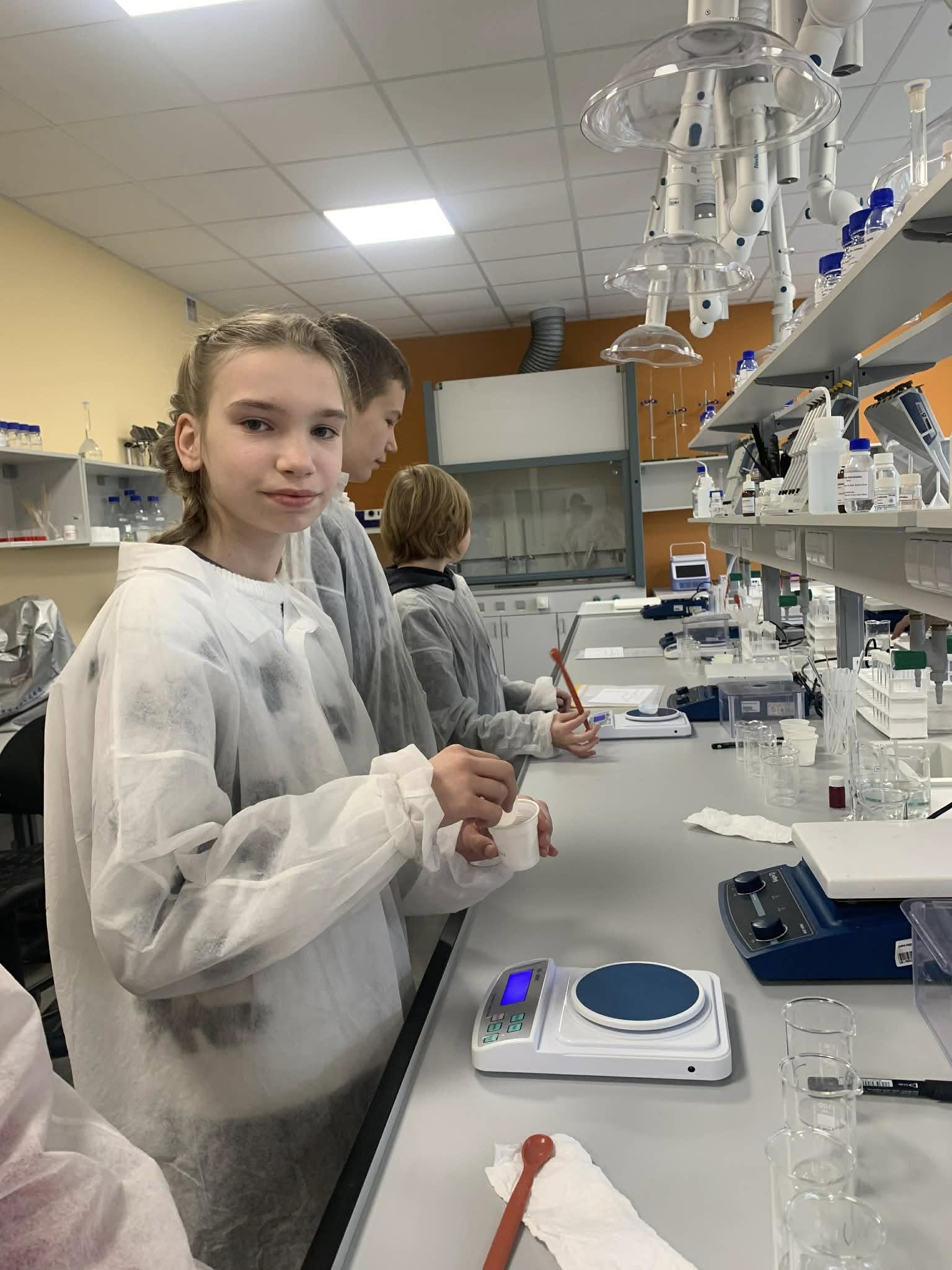 21 listopada uczniowie klas 5–6 wraz z panią od nauk przyrodniczych wzięli udział w ciekawych zajęciach laboratoryjnych. Zajęcia odbyły się w Centrum STEAM w Olicie. Tematem zajęć było “Badanie kwasowości roztworów za pomocą wskaźników i czujników”. W laboratorium uczniowie badali kwasowość i zasadowość różnych roztworów przy użyciu naturalnych wskaźników oraz czujnika pH. Młodzi badacze sprawdzali, czy popularne substancje – takie jak sok z cytryny, sól kuchenna oraz soda – są kwaśne, neutralne czy zasadowe. Porównując wyniki uczyli się formułować wnioski i rozumieć właściwości chemiczne otaczających nas artykułów spożywczych.