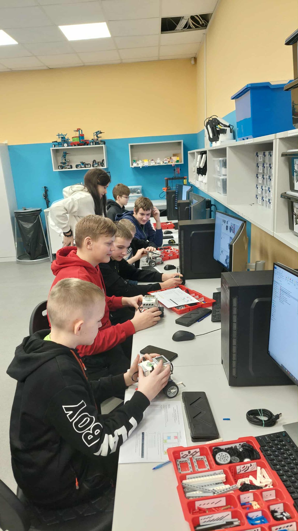 2 grudnia uczniowie klas 7 i 8 w Centrum STEAM w Olicie wraz z nauczycielem fizyki odwiedzili zajęcia poświęcone programowaniu robotów. Tematem zajęć była „Matematyczna nawigacja w labiryncie”. Podczas zajęć dzieci konstruowały roboty, które mogły jeździć. Musiały również zaprogramować roboty tak, aby poruszały się po wyznaczonej trasie. Było to nietypowe i interesujące zajęcie, które dostarczyło uczniom wielu pozytywnych emocji.