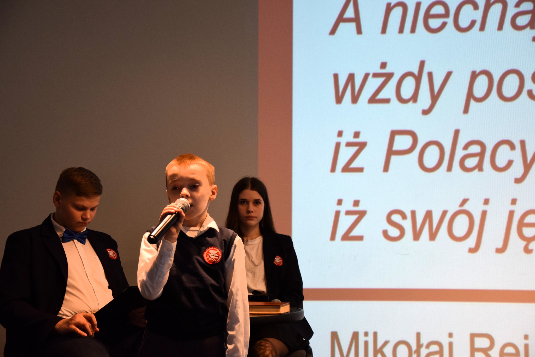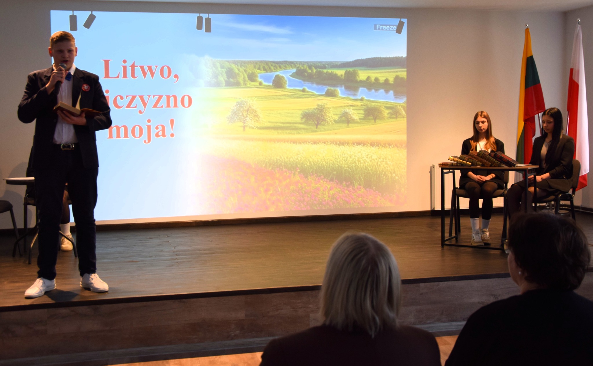 Mūsų gimnazijoje vyko išskirtinis renginys skirtas Tarptautinei gimtosios kalbos dienai, kuris priminė mums, kokia svarbi gimtoji- lenkų kalba. Įvairių klasių mokiniai su dideliu įsitraukimu deklamavo žinomų lenkų poetų eilėraščius.Ypatinga šventės dalis buvo mokyklos ansamblio „Tęcza“ pasirodymas – jie atliko gražias lenkų liaudies dainas. Linksmos melodijos ir spalvingi tautiniai kostiumai sukūrė išskirtinę, pakilią nuotaiką. Bendras dainavimas parodė, kad gimtoji kalba gyvena ne tik knygose, bet ir muzikoje bei kasdieniuose pokalbiuose.