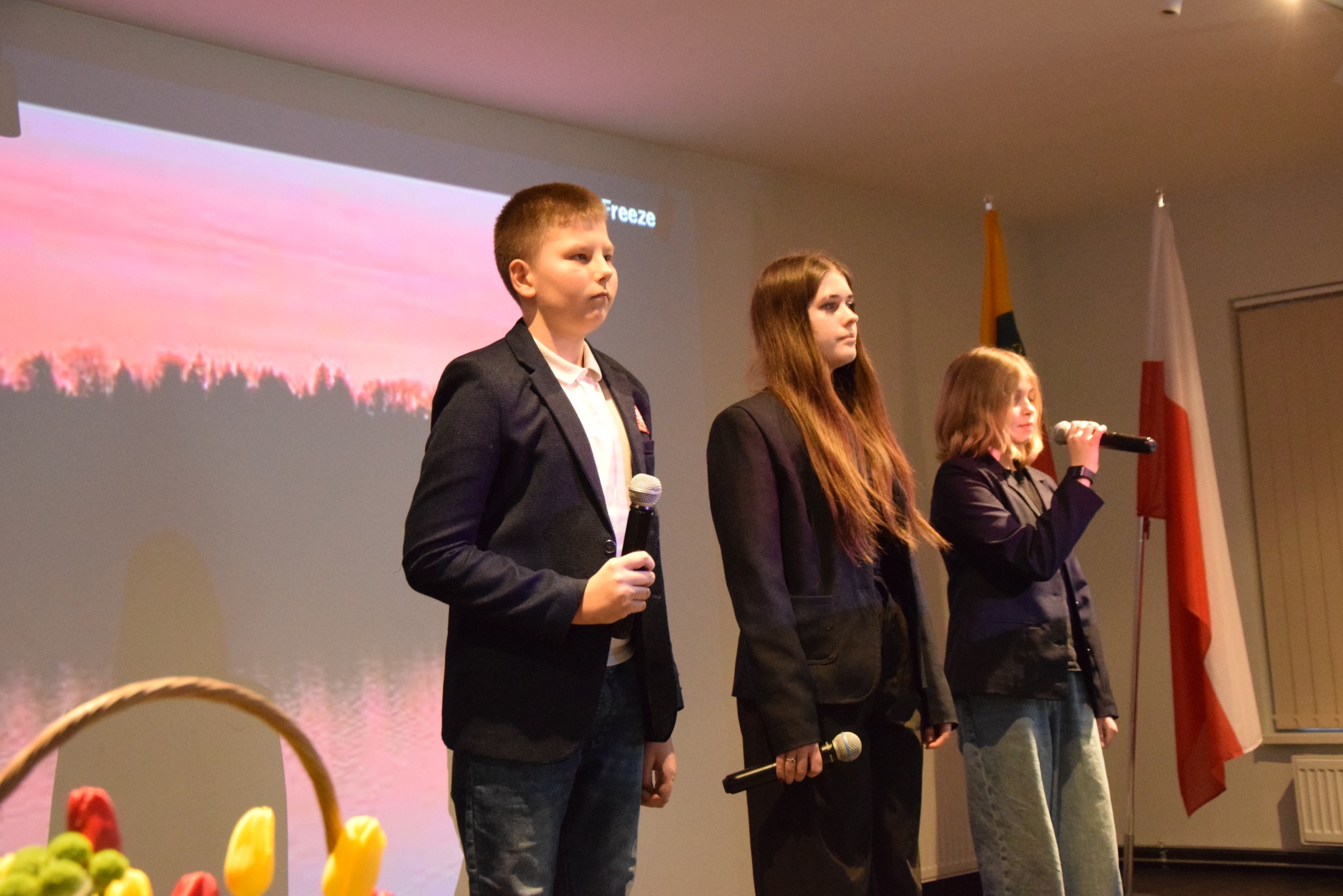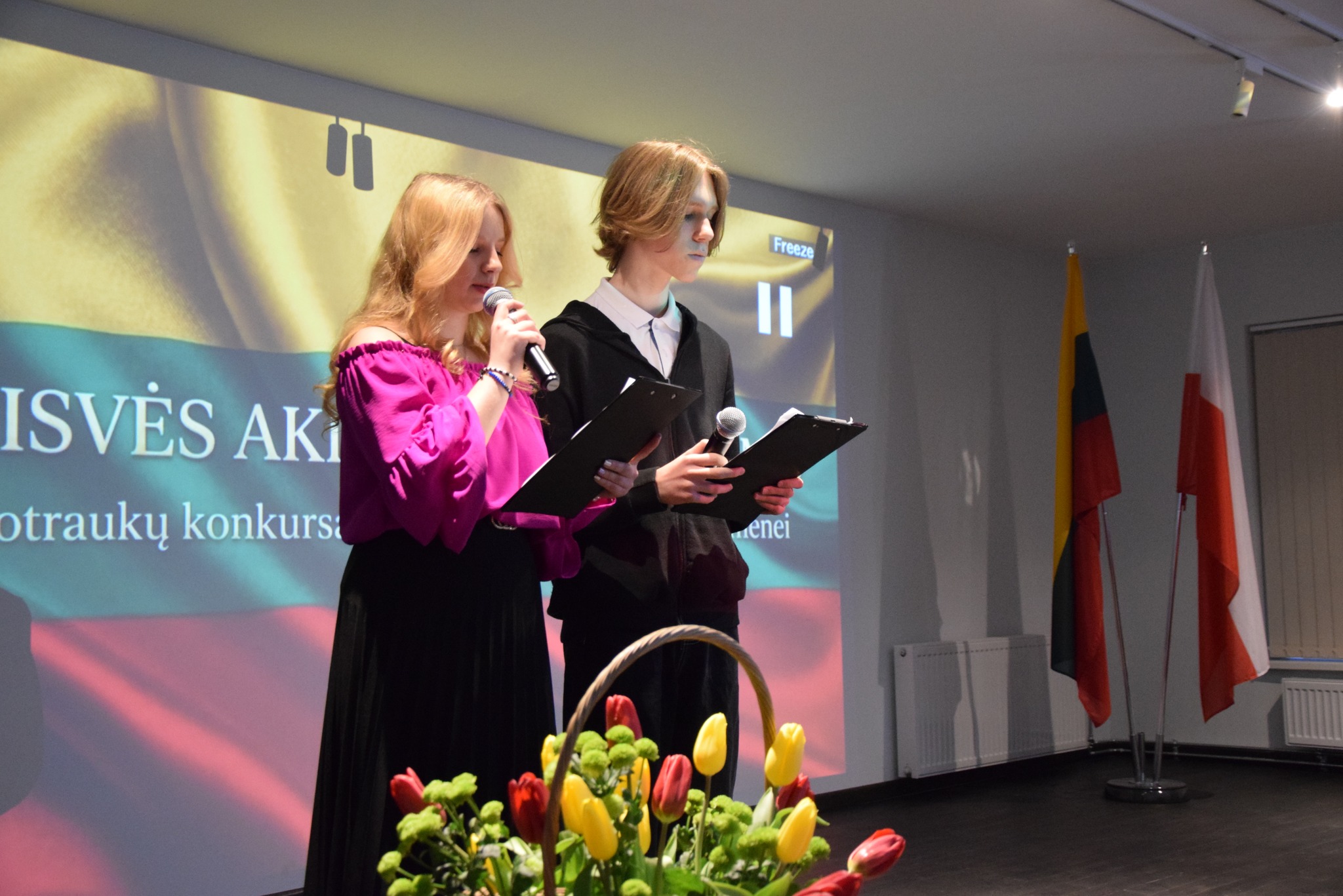 Renginį sveikinimo žodžiu pradėjo gimnazijos vadovė, pabrėždama, kad laisvė – tai vertybė, kurią turime saugoti, puoselėti ir perduoti ateities kartoms. Šventės metu skambėjo dainos apie Lietuvą, mokiniai jautriai skaitė eiles, kupinas pasididžiavimo ir meilės gimtajam kraštui. Mažiausieji mūsų bendruomenės nariai – pradinukai – pradžiugino visus nuotaikingu šokiu „Sėjau rūtą, sėjau mėtą“, kuris pripildė salę šypsenų. Renginio metu taip pat buvo paskelbti fotografijų konkurso „Laisvės akimirka mano akimis“ rezultatai. Nuoširdžiai dėkojame visiems mokiniams ir mokytojams, prisidėjusiems prie šios gražios šventės kūrimo – už kūrybiškumą, pastangas ir meilę Lietuvai. Tokios akimirkos primena, kad laisvė gyva tol, kol ją saugome savo širdyse.