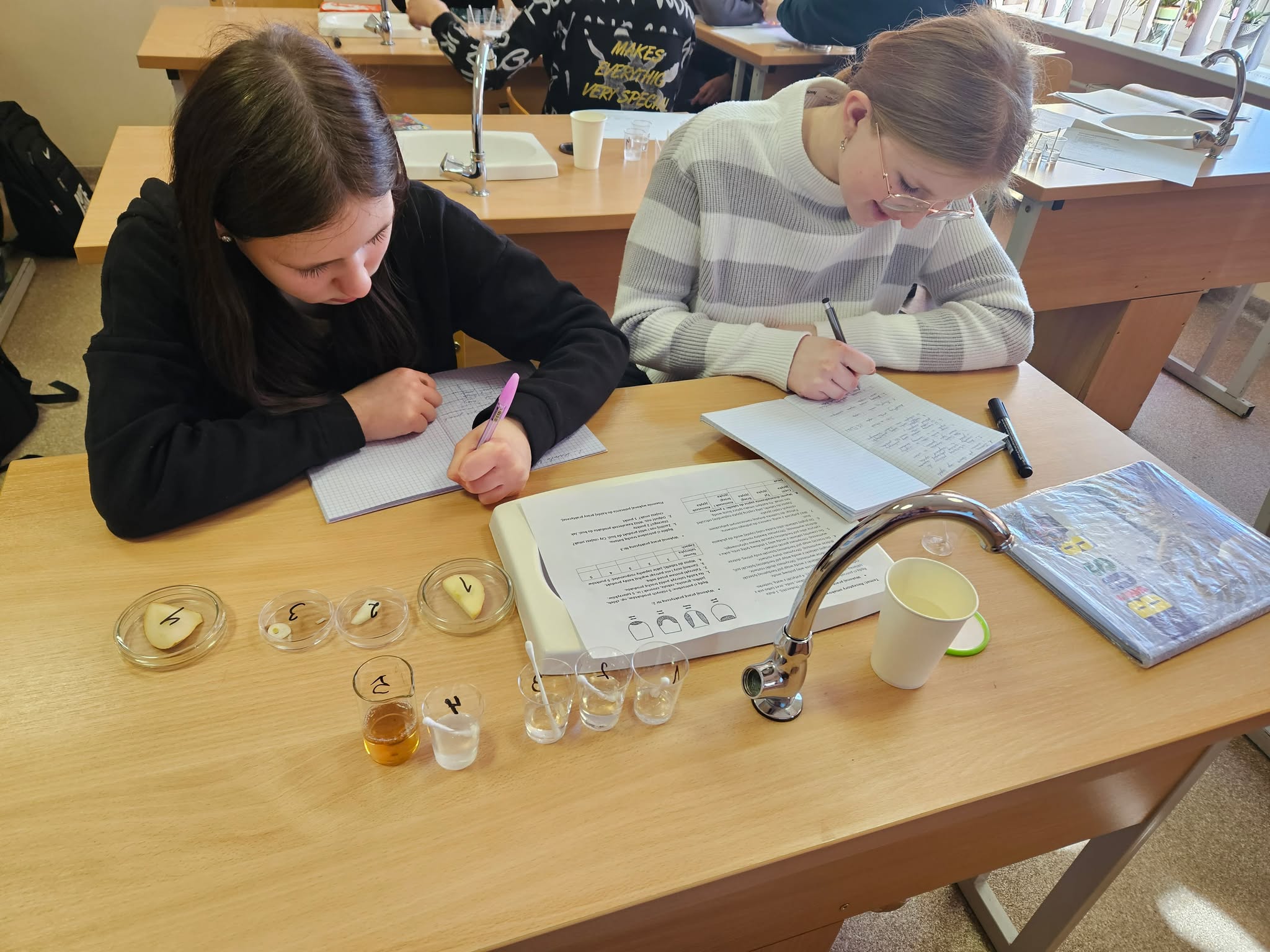 Biologijos ir chemijos pamokų metu mokiniai kartu su mokytoja Teresa Bogdiun taip pat tyrinėjo, kūrė, dirbo grupėmis bei poromis, žiūrėjo filmus, dalyvavo konkursuose bei akcijose. 7 klasės mokiniai kalbėjo apie žuvų įvairovę bei reikšmę, ištyrė jų vidinę bei išorinę sandarą, dauginimosi stadijas. IG klasės mokiniai tyrinėjo skonio bei uoslės receptorius. Mokiniai ragavo bei uostė įvairias medžiagas bei maisto produktus, pildė darbo lapus. 8 ir IIIG klasės mokiniai žiūrėjo filmą apie gyvybės atsiradimą Žemėje bei organizmų evoliuciją, patikrino savo žinias atlikdami Kahoot užduotis. IIG ir IIIG klasės mokiniai Žemės dienos minėjimo proga dalyvavo nuotolinėje konferencijoje „Įdomioji ekologija“, kurios metu sužinojo apie tekstilės perdirbimo būdus bei reikšmę. IG ir II G klasės mokiniai dalyvavo integruotoje chemijos, geografijos pamokoje su sveikatos priežiūros specialistu Leonidu Vysockiu, kurios metu kalbėjo apie vandens reikšmę, ištyrė lietaus ir įvairių šaltinių vandens kokybę, atliko užduotis, sprendė galvosūkius bei dalyvavo konkurse. Konkurso laimėtojai gavo geriamojo vandens buteliukus, o renginio dalyviai pasirinko dovanas.