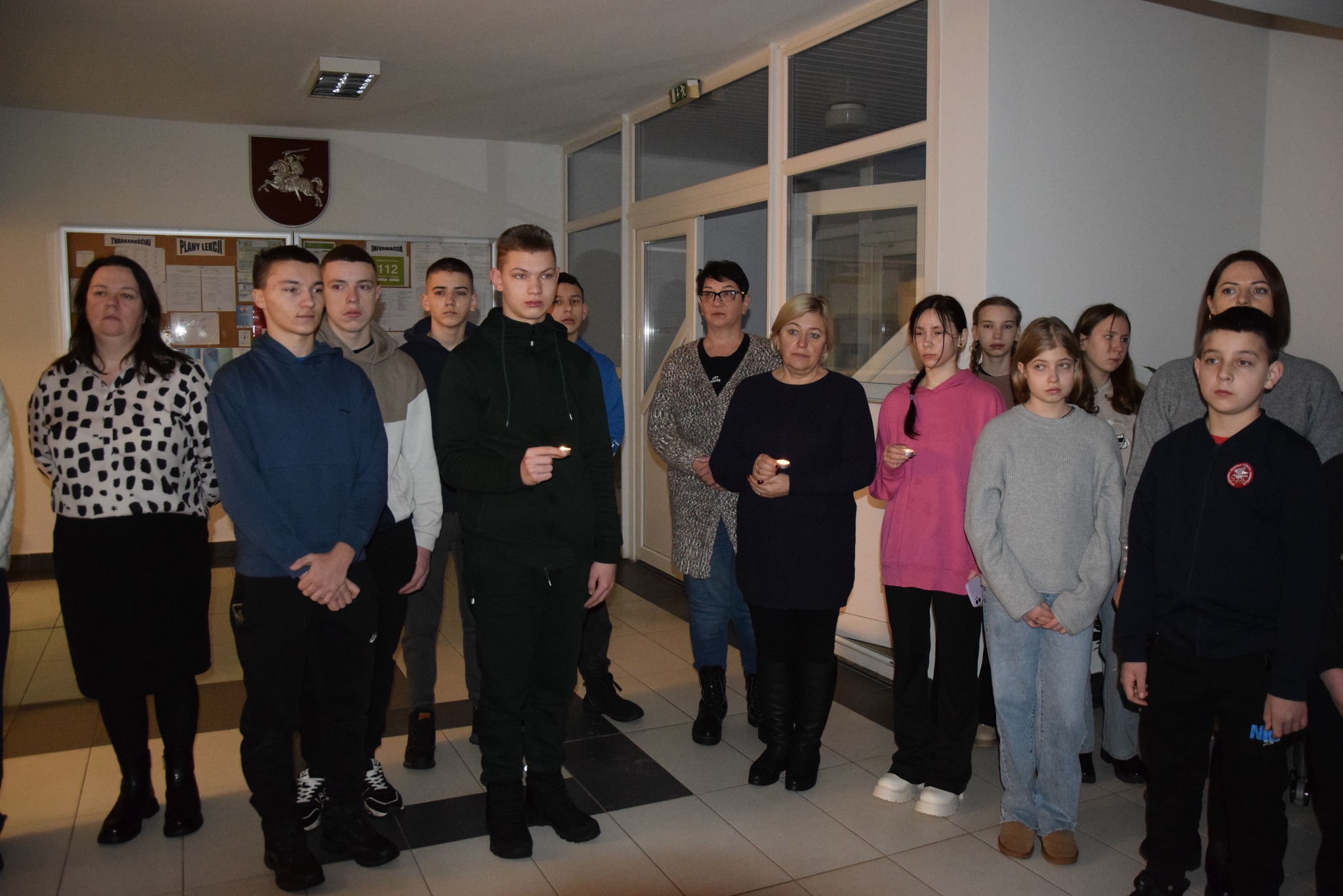 13 stycznia, upamiętniając 35. rocznicę Dnia Obrońców Wolności Litwy, społeczność gimnazjum wspominała styczeń 1991 roku, kiedy to obywatele Litwy, wiedzeni pragnieniem jedności i wolności, odnieśli historyczne zwycięstwo. Zebraliśmy się w ciszy, aby uczcić tych, którzy walczyli o wolność. W blasku płonących świec powróciła styczniowa noc 1991 roku, przypominając nam o odwadze, jedności i wierze w nasz kraj. Słowa uczniów stały się podziękowaniem dla Obrońców Wolności, których poświęcenie na zawsze pozostanie w naszej pamięci.
