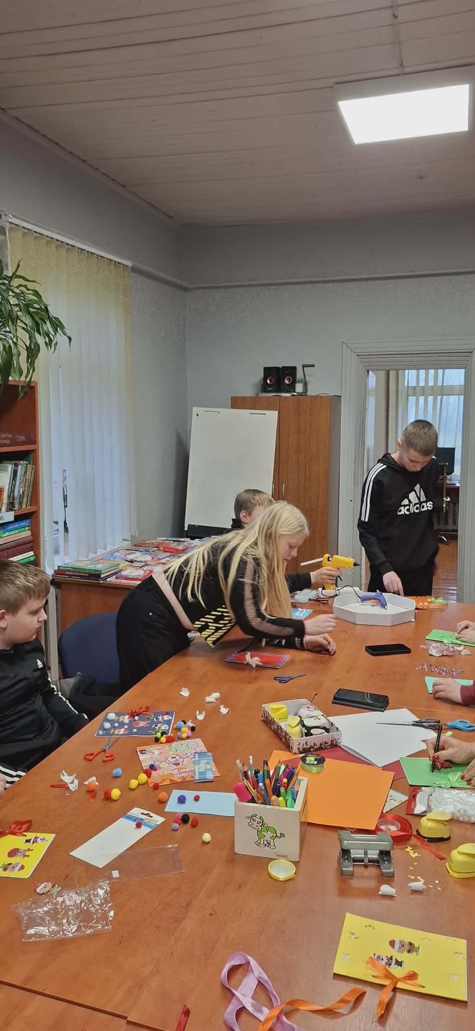 Šeštos klasės mokiniai dalyvavo integruotoje auklėjamojoje ir lenkų kalbos pamokoje, kuri vyko mokyklos bibliotekos skaitykloje. Pamoka vyko tema „Kuriame knygeles“ ir suteikė mokiniams daug džiaugsmo bei galimybę kūrybiškai dirbti.