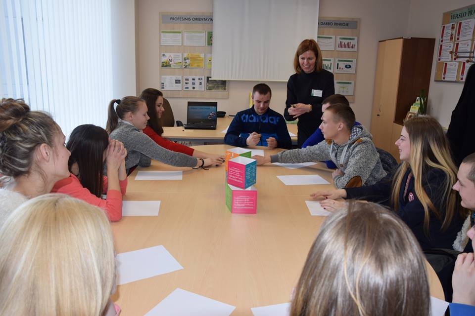 Antradienį, vasario 28 d. mūsų gimnazijos IV G klasės mokiniai lankėsi Šalčininkų r. Darbo biržos Jaunimo darbo centre. Centro darbuotoja Anastasija Svorobovič papasakojo mokiniams, kuo užsiima šis centras, kuo jis gali būti naudingas jauniems žmonėms. Pasižvalgę po erdvias patalpas ir apžiūrėję stenduose pateikiamą informaciją mokiniai sėdo prie stalo pažaisti savęs pažinimo ir profesijos pasirinkimo žaidimo. Rezultatai privertė pamąstyti apie tai, ką norėtų nuveikti ateityje ir ko norėtų iš gyvenimo.