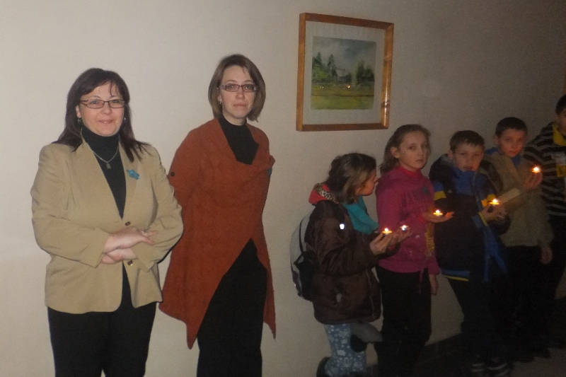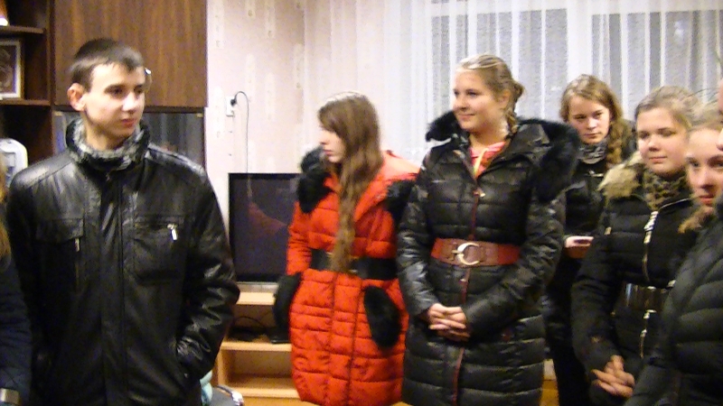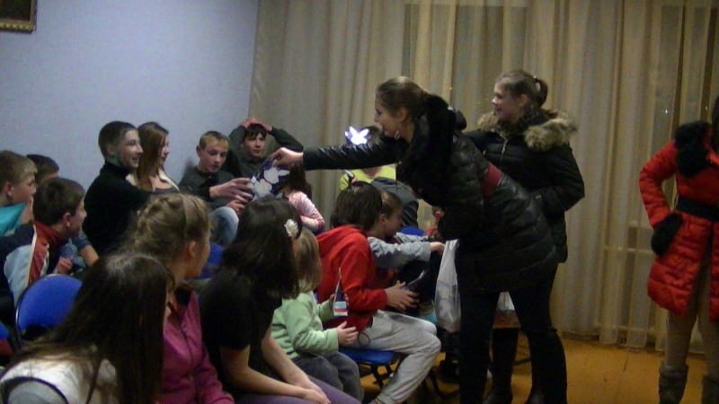 Po dažasvydžio visi nuvyko į Šalčininkų vaikų globos namus. Aplankyti vaikučių mokiniai planavo visą mėnesį ruošdami jiems dovanėles: vieni nešė megztas kojines, pirštines, kiti – vaikiškas knygutes, o patiems mažiausiems – minkštus žaislus. Mokiniai pasižymėjo savo dosnumu nupirkę kiekvienam vaikui po saldainių dėžutę. Vakare mus šiltai sutiko mieli veidai su spindinčiomis akytėmis. Vaikai buvo labai draugiški ir mieli. Visus gaubė šventinė nuotaika ir geraširdiškumas. Mokiniai pasveikino vaikus su artėjančiomis šventėmis išdalindami jiems dovanėles, vaikai neliko abejingi, šiltai priėmė jas ir padėkojo pasikviesdami mokinius į svečius. Vėliau socialinė darbuotoja smulkiau papasakojo mokiniams apie vaikus ir jų gyvenimą šioje įstaigoje.