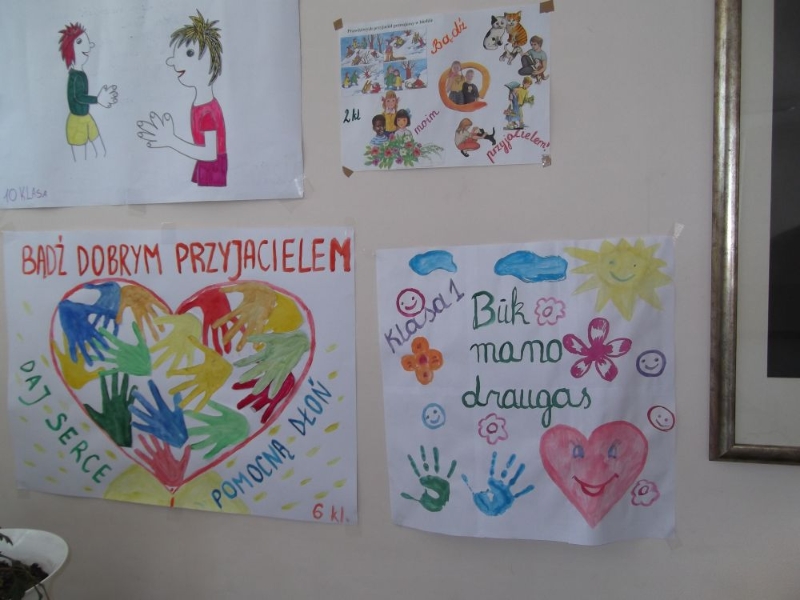 Visą šią savaitę mokiniai kūrė bendrus klasės plakatus „Būk mano draugas“, kuriuos vėliau visi draugiškai iškabino mokyklos fojė. Net ir patys mažiausi prisijungė prie šios bendros veiklos. Savaitės pabaigoje buvo renkamas gražiausias ir labiausiai temą atspindintis plakatas. Dvylika originalių ir spalvingų kūrinių nuo šiol puošia mokyklos sieną.