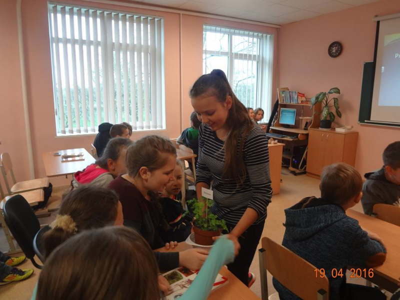 19 kwietnia w naszym gimnazjum odbył się Dzień Biologii, podczas którego uczennice klasy 7 O. Kondratczyk, K. Jachimowicz i E. Milewska przedstawiły swój projekt „Rośliny przyprawowe”. Koordynatorem projektu jest nauczycielka biologii Teresa Bogdiun. Uczennice samodzielnie zebrały materiał o różnych roślinach, stosowanych jako przyprawy, przyszykowały prezentacje, wyhodowały rośliny w doniczkach. Dziewczynki projekt przedstawiły dla klasy 6, opowiedziały o właściwościach roślin, ich zastosowaniu i pochodzeniu. Uczniowie mieli możliwość nie tylko usłyszeć, ale również zobaczyć, powąchać i skosztować wysuszone przyprawy, wyhodowane rośliny. W końcu prezentacji uczniowie uczestniczyli w konkursach: musieli zgadnąć według zapachu nazwę 5 przypraw i 15 nazw roślin przyprawowych na rysunkach. Zwycięzcy konkursów otrzymali nagrody.