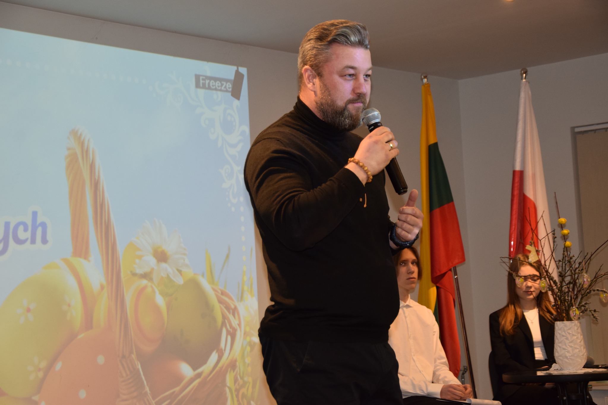 Szczególne podziękowania za wizytę oraz pamięć o nas – rodakach mieszkających poza granicami Polski – wyraziła również Przewodnicząca Rady Gimnazjum, Pani Krystyna Žiurienė. Podkreśliła, jak wiele znaczy dla naszej społeczności fakt, że Polacy z Ojczyzny pamiętają o nas i wspierają nasze działania. Do podziękowań dołączyły przedstawicielki Rady Rodziców- Pani Agna Kondratczik oraz Pani Irena Bernatowicz.