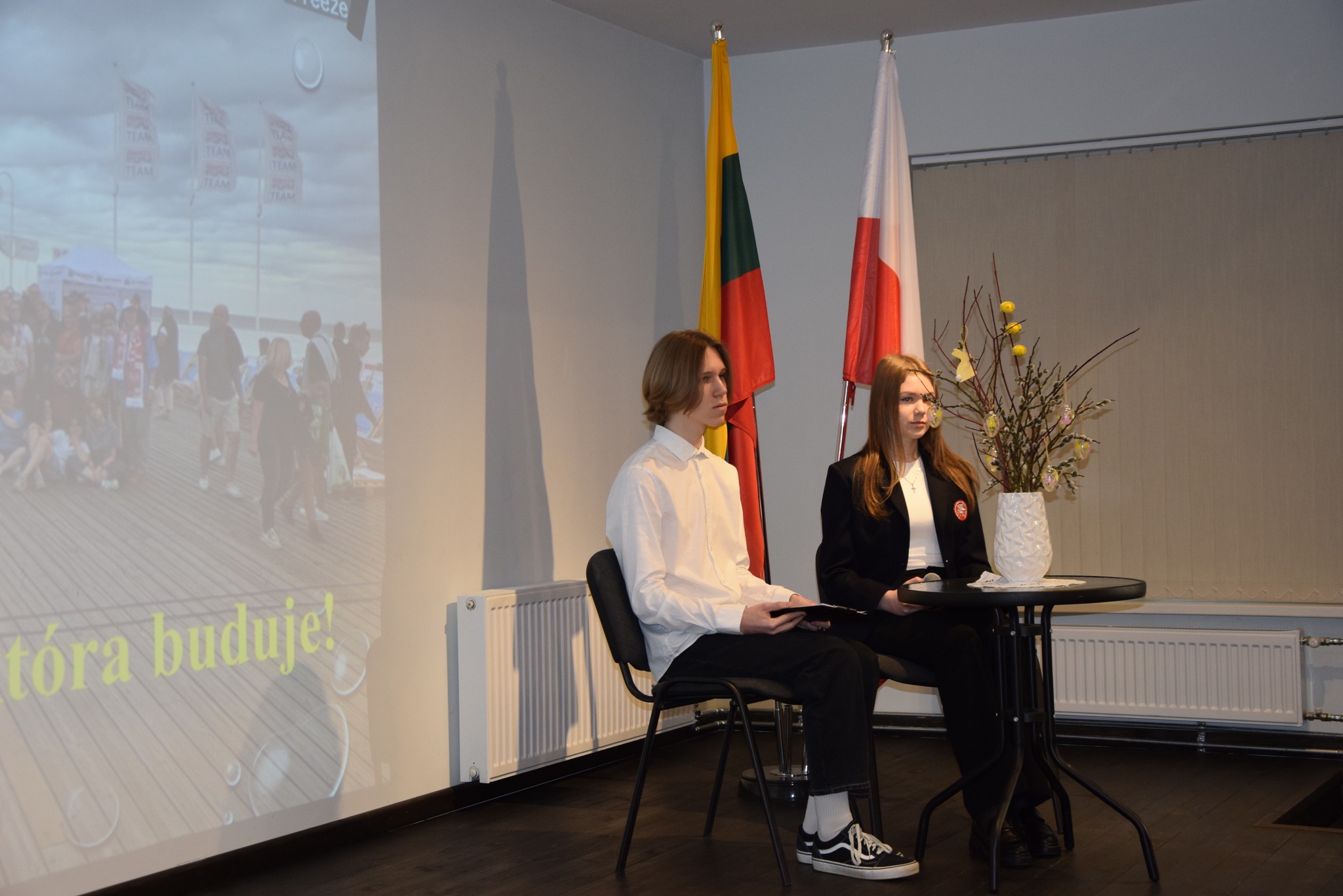 Dyrektor gimnazjum serdecznie powitała wszystkich zebranych, podkreślając, że łączy nas przede wszystkim wspólny język, wiara, tradycja, kultura oraz przyjaźń – szczera i rozwijana od 2023 roku, zapoczątkowana podczas spotkań na koloniach letnich w Ostródzie.